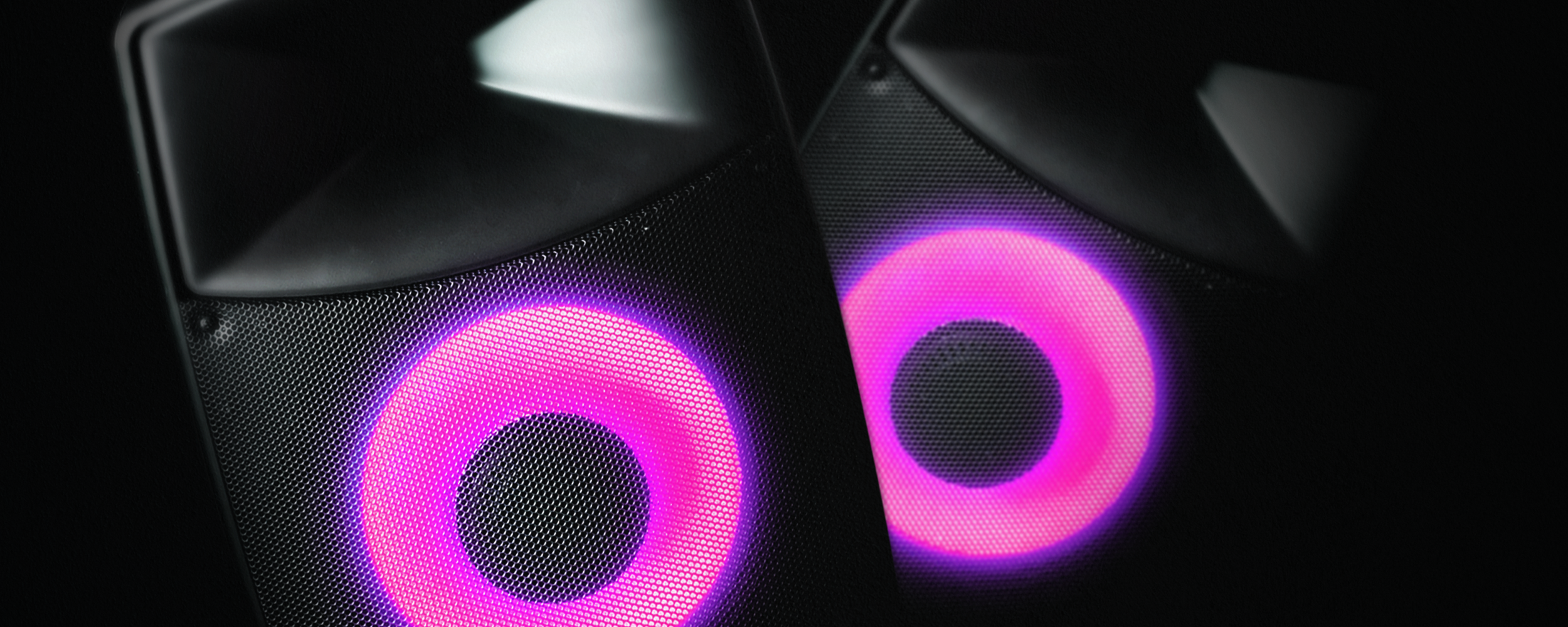 With an interesting visual design featuring LED light rings on the surface of its woofer, this speaker presents stunning dynamic lighting effects, adjustable from its control panel located at the back of the speaker.