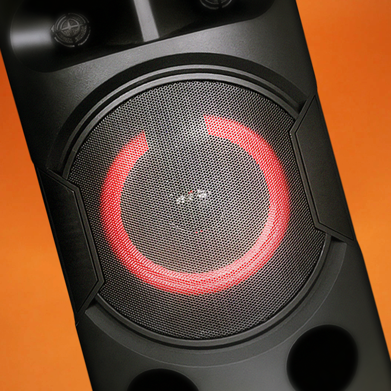 Additionally, it features LED lighting technology to make your spaces shine. Its dual woofers boast an incredibly aesthetic and modern design, fully covered with red LED rings.