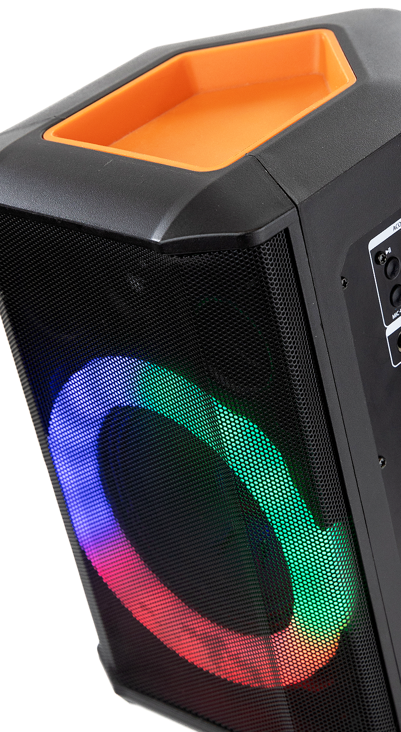 In addition to its modern design with stunning finishes, it features LED light rings around the woofer. These create striking light effects, giving dynamic and versatile energy to your listening moments.