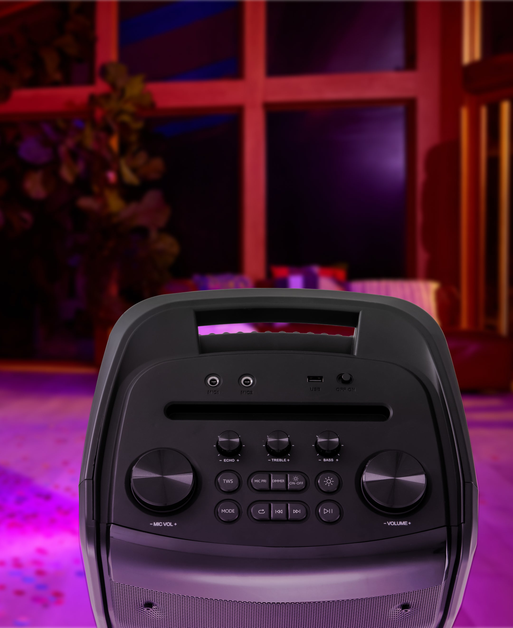 Sound tower with 1350W PMPO power and 90W true RMS. Enjoy deep bass from its 8” woofer and crisp highs from its 2.5” tweeter. Perfect for parties, gatherings, or simply experiencing your music with intensity.