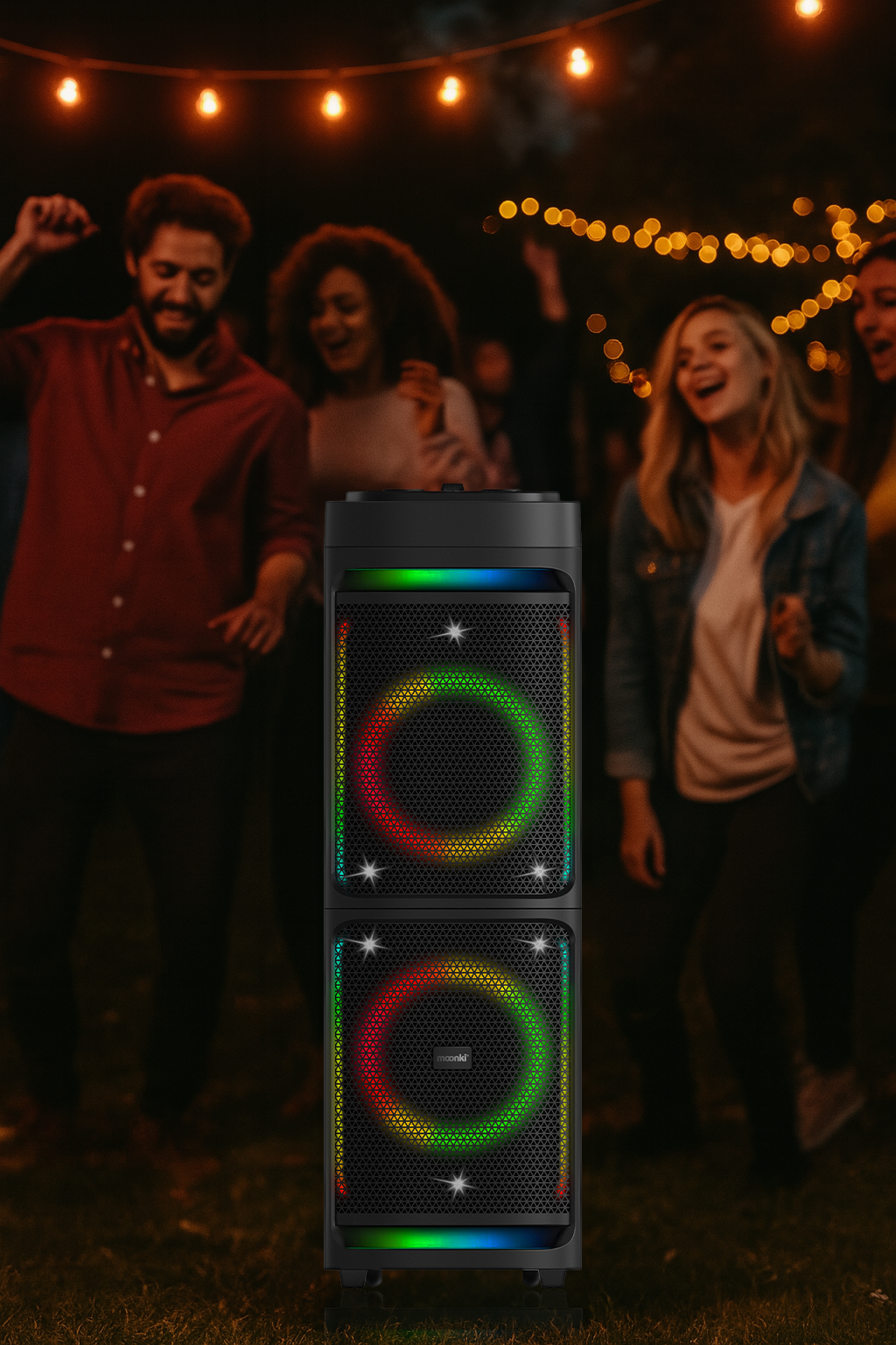Everything is powered by a high-capacity 22.2V 6000 mAh lithium battery, offering hours of continuous playback—so you can take your music anywhere without depending on a constant power source. The Moonki MW-T400 combines power, technology, connectivity, and design in a single device, making it the ideal choice for those who want more than just sound—they want a complete experience.