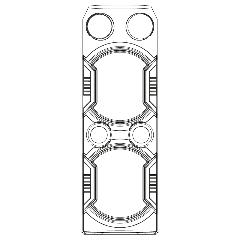 The top panel of this magnificent sound tower offers a complete and simple layout of controls with button and knob placement that clearly indicate their functions, so you can start listening immediately without wasting time setting it up to your liking. In the center of the panel is the volume control knob, with two smaller knobs on either side to control the microphone and echo.