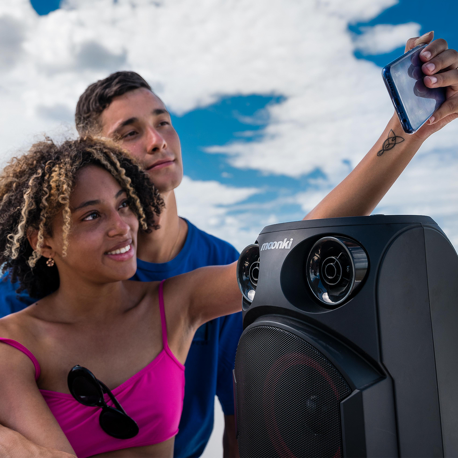 A compact, practical, and safe two-way unit for use and transport, its battery is long-lasting, and its connectivity options are numerous. Ideal for taking to parties, events, or social gatherings.