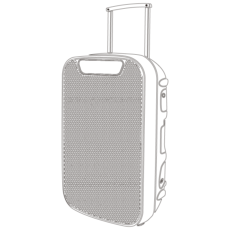 To complement these features and help you discover even more sounds, its 2-way configuration ensures high fidelity and clarity in both bass and treble sounds, through its impressive 15" woofer - with a 38mm KSV coil - and its 1" tweeter, respectively. It has an RCA auxiliary input and a 6.35mm microphone input. It also includes a plastic microphone with a cable, a tripod stand for better sound projection, an MP3 player, a remote control, and other accessories.