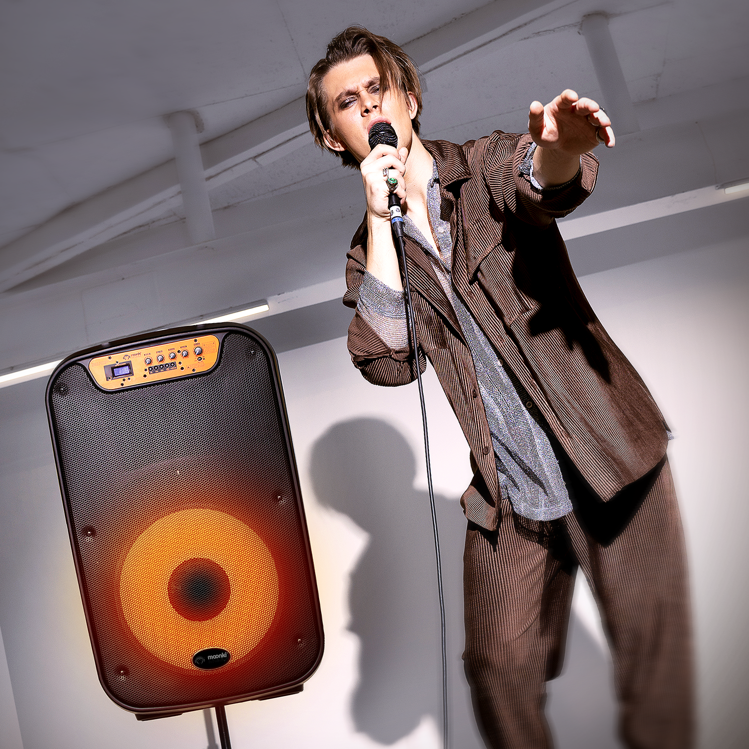 Dynamic light effects achieved with LED lighting rings incorporated in the 15" woofer with a 38mm KSV coil.