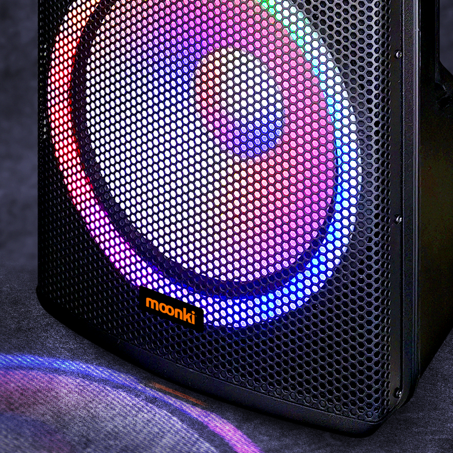 This professional speaker is adorned with distinctive and vibrant LED lighting across its entire surface, so you don’t have to worry about decoration or appearance, as it seamlessly integrates into your spaces, adding a pleasant luminous presence.