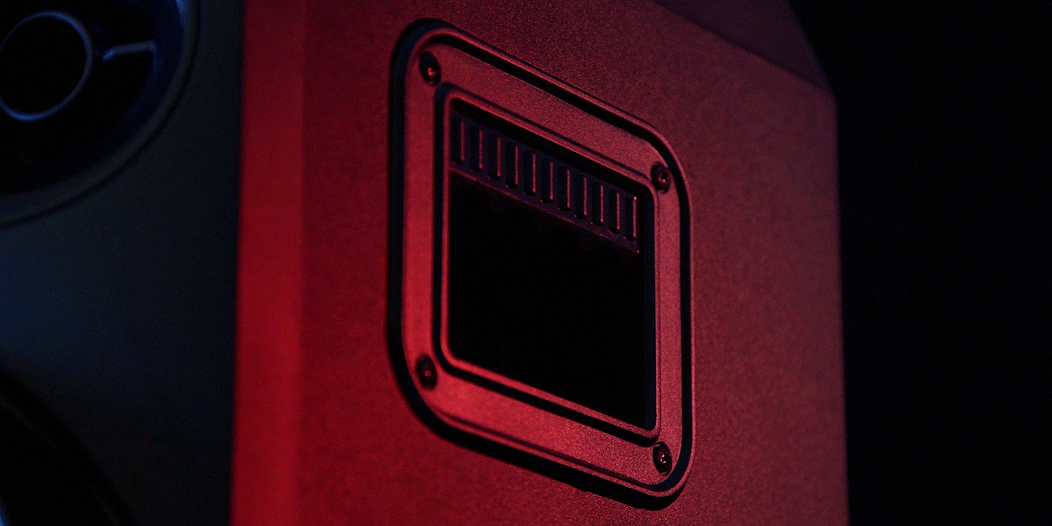 In the center of the panel, you’ll find a highly functional volume control wheel, and below it, the Mixer function. Conveniently placed, it also features dual screens on the front, showing the playback from device A or device B.