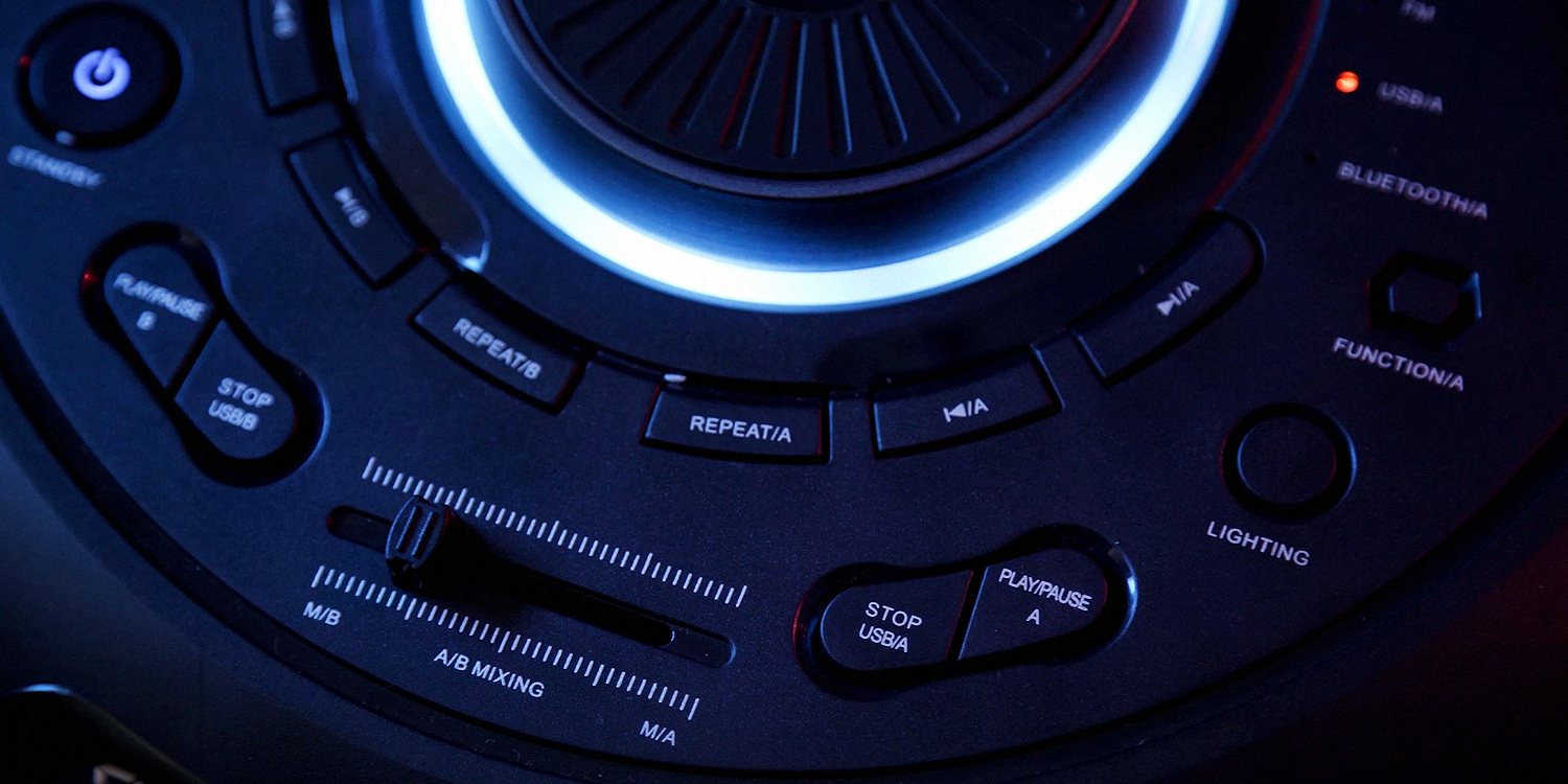 The top panel of this exceptional sound tower offers a very intuitive control layout. Fully equipped with multiple connectivity options, it allows access to two playback devices simultaneously, so everyone can choose songs through its dual USB inputs.