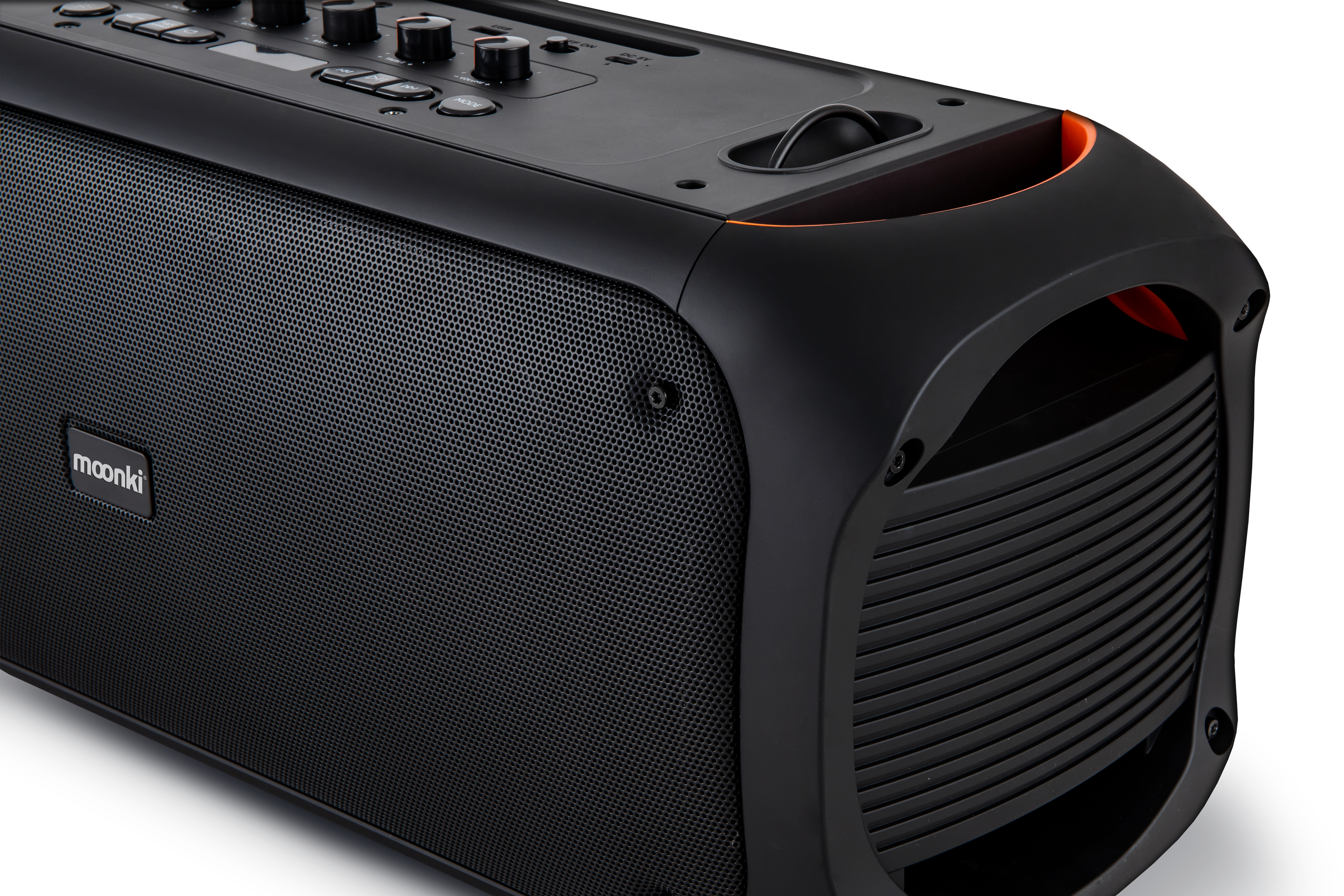 he MOONKI TRIP active speaker is the perfect addition to elevate your social events and parties to a new level. With an impressive PMPO power of 900W, this device is designed to deliver powerful and crystal-clear sound that will fill any space, creating a vibrant and lively atmosphere. Equipped with a Class D amplifier board, it ensures high-quality audio playback without distortion, even at high volumes.